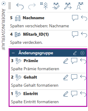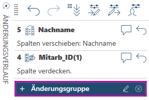Mehrere auf eine Spalte angewendeten Änderungen oder die mehrfache Anwendung der gleichen Änderung können gruppiert werden, um zu verhindern, dass die Änderungsverlaufliste überlang wird.