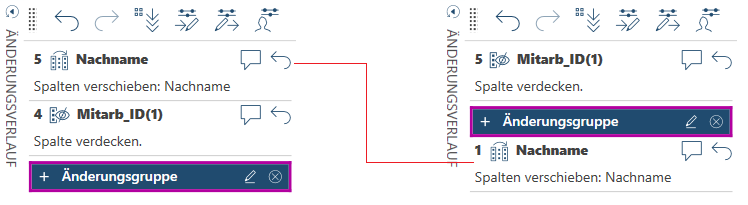 Ziehen Sie hierzu eine Änderung einfach aus der Änderungsverlaufliste auf eine andere Spalte in der Tabelle.
