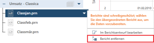 Wenn Sie einen Bericht löschen möchten, klicken Sie mit der rechten Maustaste darauf und wählen Sie Bericht entfernen aus dem Kontextmenü aus.