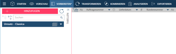 Wenn Sie die Haupttabelle auswählen, können Sie Daten vorbereiten, transformieren und kombinieren.