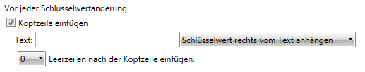 Wenn Sie nach einer Kopfzeile eine Leerzeile einfügen möchten, markieren Sie die Option Kopfzeile einfügen im Abschnitt Vertikal (Spalten) und legen Sie dann einen Wert für die Anzahl der nach der Kopfzeile einzufügenden Leerzeilen fest.