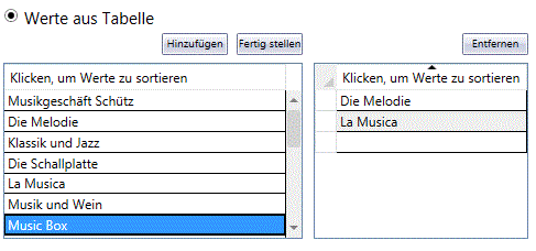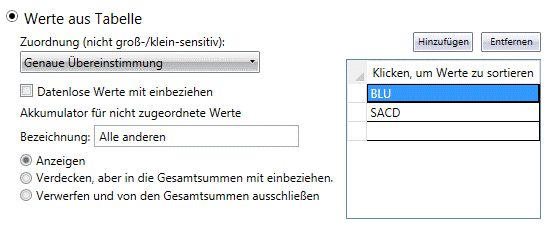 Wenn Sie die Option Werte aus Tabelle gewählt haben, klicken Sie jetzt auf „Hinzufügen“, um die Schlüsselwerte anzuzeigen: