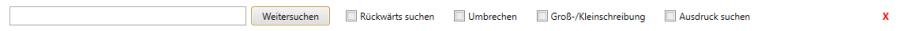 Um die Suche zu beenden und das Suchfeld zu schließen, wählen Sie STRG+F oder markieren Sie das rote Kästchen x auf der Seite des Suchfeldes.