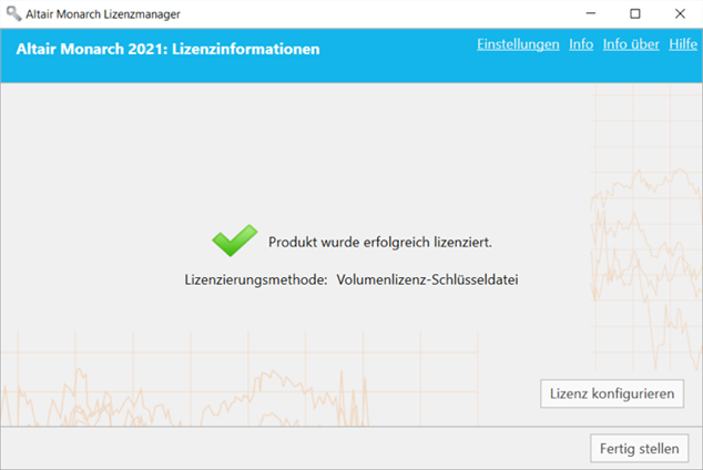 Klicken Sie auf Fertig stellen, um Ihre Lizenzierungseinstellungen zu speichern und das Lizenzierungsverfahren abzuschließen.