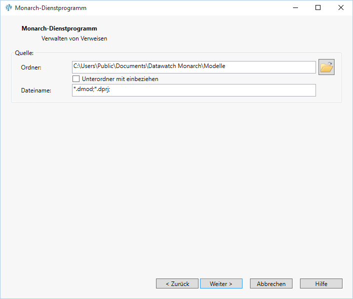Aktivieren Sie das Kontrollkästchen Unterordner mit einbeziehen, um alle Binär-Modelle oder -Projekte mit einzubeziehen, die sich in den Unterordnern des angegebenen Ordners befinden.