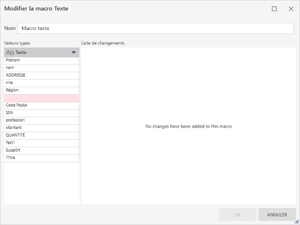 Vous pouvez appliquer les changements suivants aux colonnes Texte sous forme de macros :