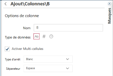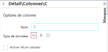 Pour regrouper les valeurs des cellules dans une colonne, activez l’option Activer Multi-cellules dans les propriétés de la colonne :