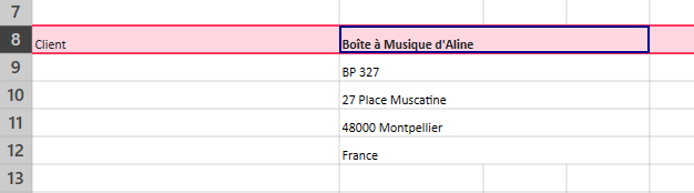 Sélectionnez une cellule au-dessus d’un détail ou d’un ajout existant. La cellule est mise en surbrillance.