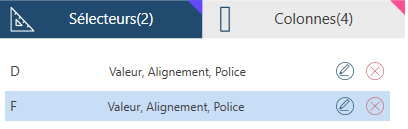 Les sélecteurs et les colonnes sont ajoutés à la liste des sélecteurs et des colonnes pour le masque actuel :