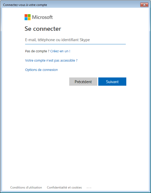 6. Saisissez les informations requises pour vous connecter à votre compte Microsoft.