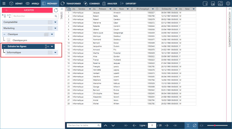 Allez à la fenêtre Préparer et sélectionnez la table que vous voulez transformer.
