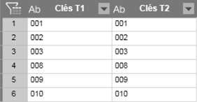 Remarquez que les colonnes ne doivent pas nécessairement être du même type de données pour servir de clés de jointure. En cas de types de données différents, Data Prep Studio convertit automatiquement les colonnes concernées en texte pour permettre la jointure des deux tables.