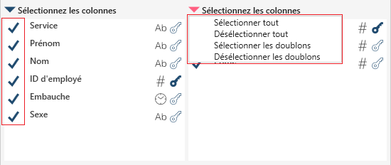 Sélectionnez ou désélectionnez les enregistrement en double.