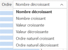 Pour contrôler l'affichage des valeurs, sélectionnez une option de tri dans la liste Trier par du panneau Statistiques :