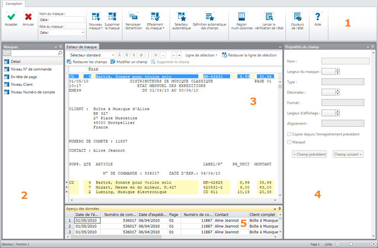 Affiche un échantillon des données qui seront extraites par les masques actuellement définis. L'Aperçu offre un feedback rapide. |