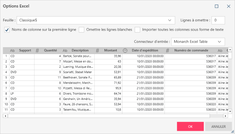 Prévisualiser et confirmer les données de la source de données