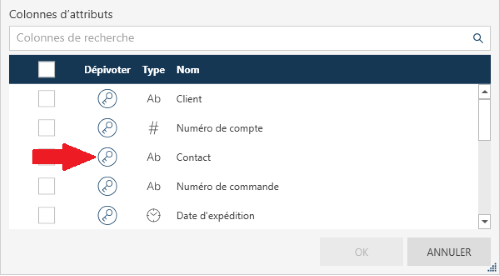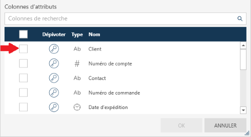 Sélectionner des colonnes individuelles en cochant leur icône Clé dans le panneau Colonnes d’attribut, ou