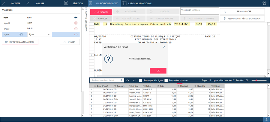 6. Une zone contextuelle s’ouvre pour vous informer de la fin de l’opération de vérification. Vous pouvez alors lancer une nouvelle vérification ou accepter/annuler vos changements.