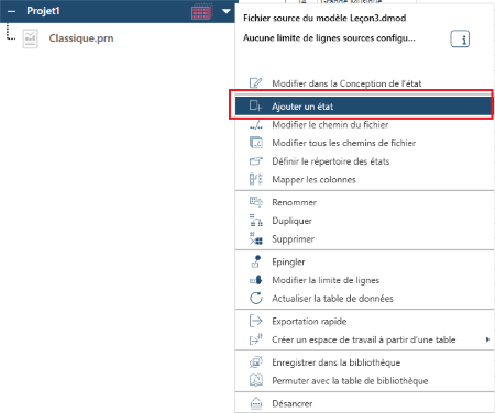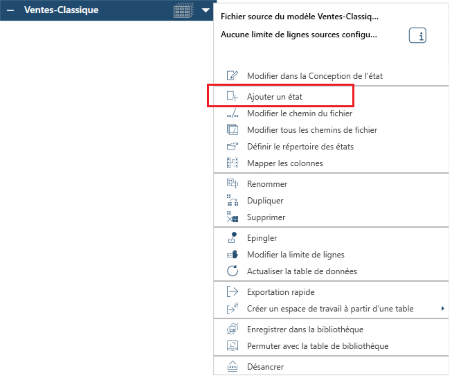 Pour ajouter d’autres états, cliquez sur la flèche de liste déroulante à côté du nom de la table principale et choisissez Ajouter un état.