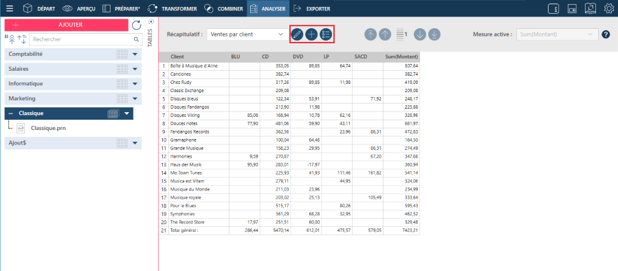 Cliquez sur l’onglet Analyser pour afficher les options de récapitulatif.