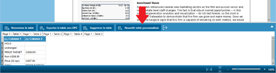 Cliquez sur Nouvelle table personnalisée sur la barre d’action en haut du panneau des tables.