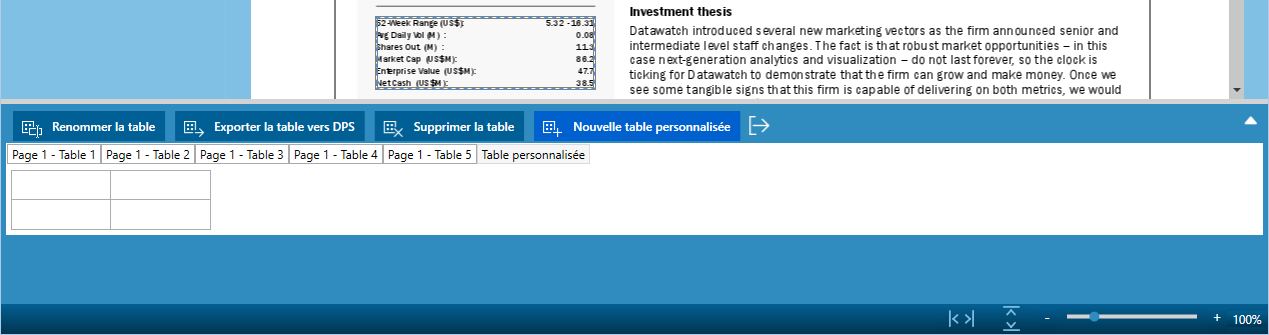 Une nouvelle table, dotée de son propre onglet, s’ajoute aux tables du panneau. Par défaut, cette table est nommée : Table ad hoc.