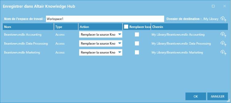 Dans la boîte de dialogue Enregistrer dans Altair Knowledge Hub :