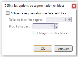 En utilisant les contrôles fournis, spécifiez une taille de bloc (comme le nombre de pages) et quel bloc charger dans la vue État.