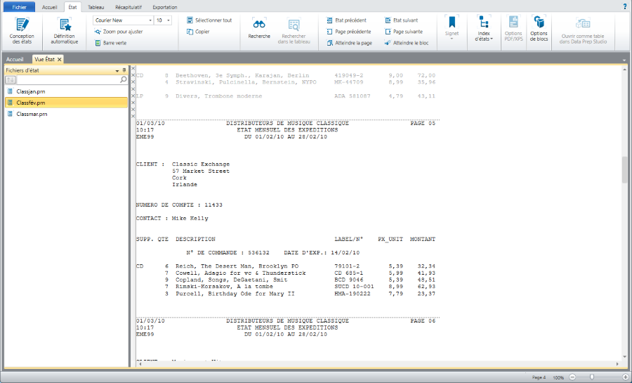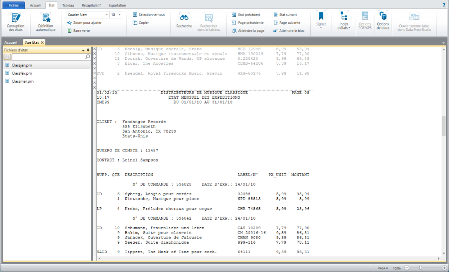 Chargez un état dans Monarch Classic.