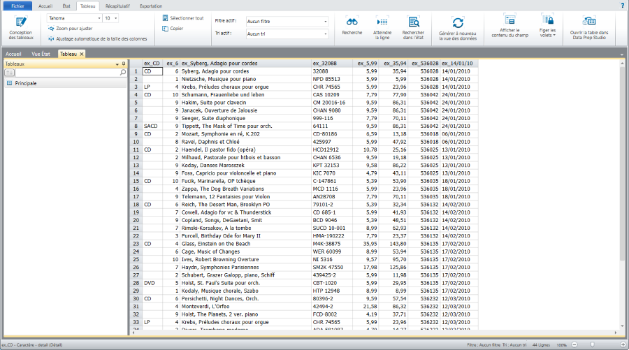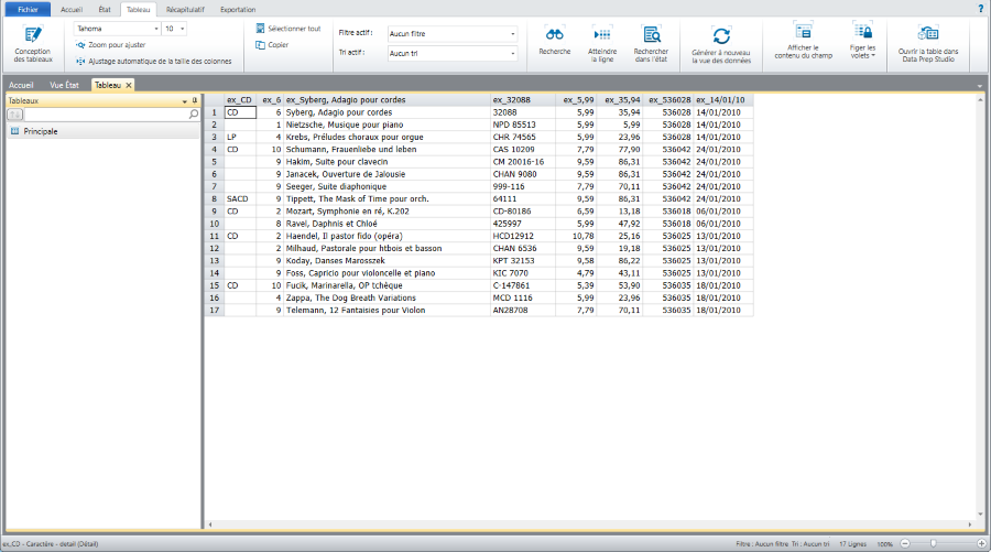 Quand vous effectuez des opérations de sélection sur un bloc d’état, seules les données de ce bloc s’affichent dans la vue Tableau.