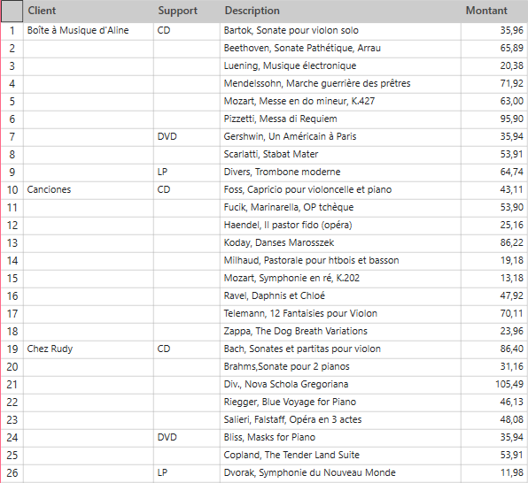 Récapitulatif réduit pour afficher le total des ventes détaillé par client.