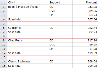 Séparation de chaque groupe client par une ligne blanche.