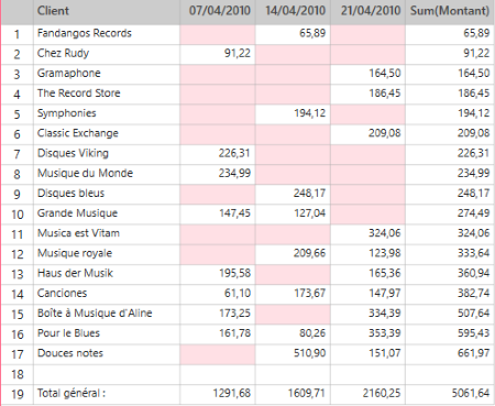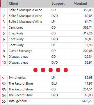 Utilisation de valeurs spécifiées pour limiter l'affichage des informations relatives à deux clients seulement (Disques bleus et Harmonica).