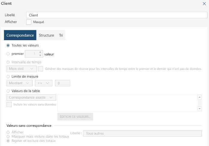 Dans Valeurs du tableau, trois choix de mappage s’offrent à vous :