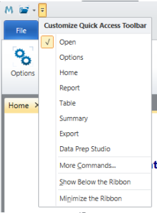 The top of the Monarch Classic ribbon is called the Quick Access Toolbar and you can customize this to display tools you access most often. By displaying a tool on the Quick Access Toolbar, you no longer need to select a tab or go deeper down menus just to access that tool.