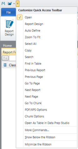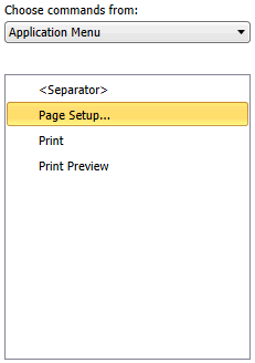 Select Application Menu or a specific tab from the Choose Commands From drop-down list.