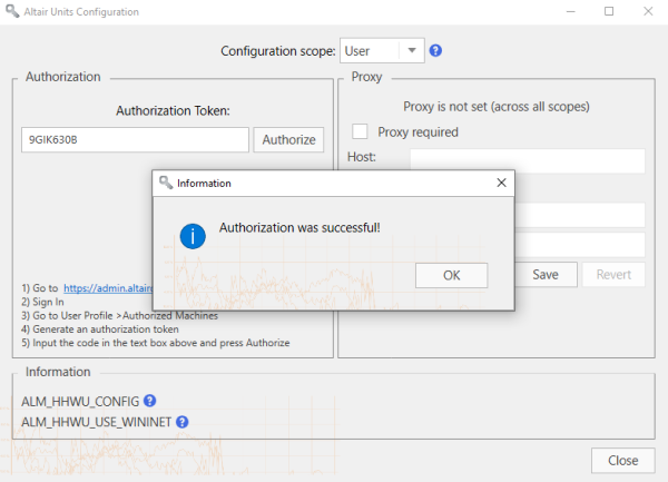 In the Altair Units Configuration screen that displays, enter the Authorization Code you received in Step 3 into the field provided and then click Authorize.