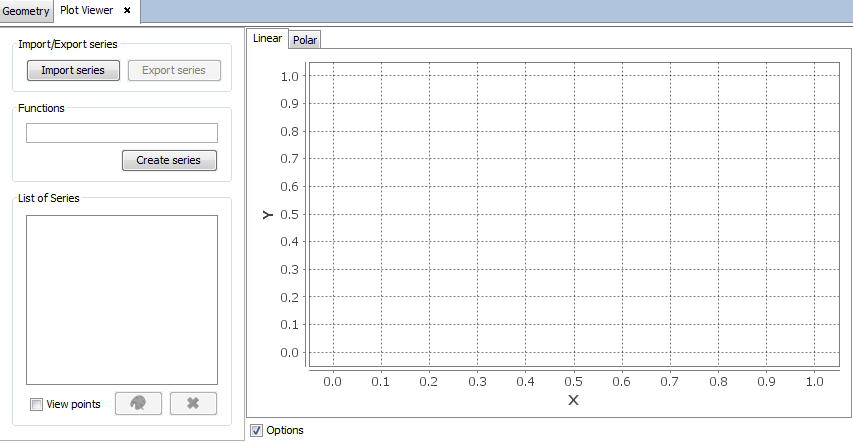 In other part of the window two display modes can be chosen for the representation of the imported series: Linear and Polar.