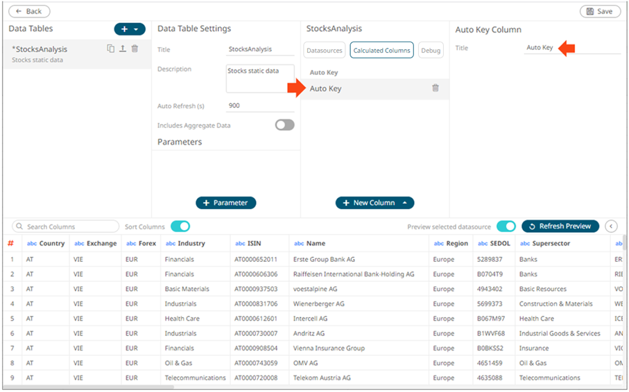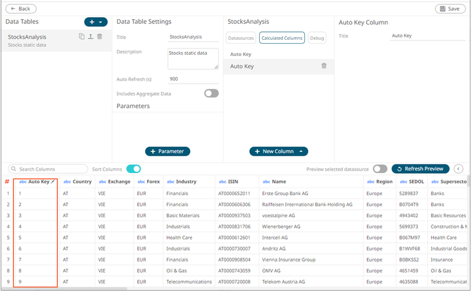 An automatic key field simply adds a new text column with a unique value for each row of the data source.