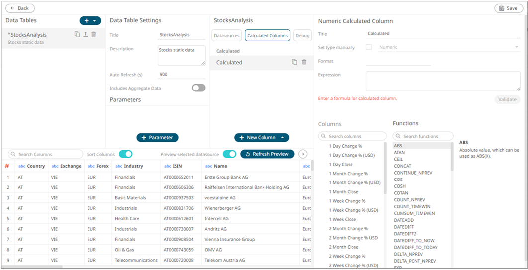 The Numeric Calculated Column pane displays.