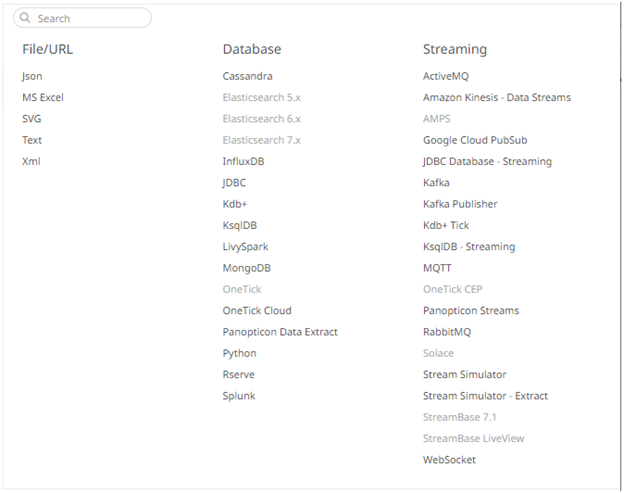 In the Connector List pane, some connectors require additional third-party software installation to be enabled. This typically requires adding JAR files to the Libfolder of the Tomcat installation and restarting Tomcat. For the supported Elasticsearch connectors, refer to the Elasticsearch Connectors Dependency Installation section. For the other connectors, refer to the Panopticon Visualization Server Installation and Reference Guide for more information.