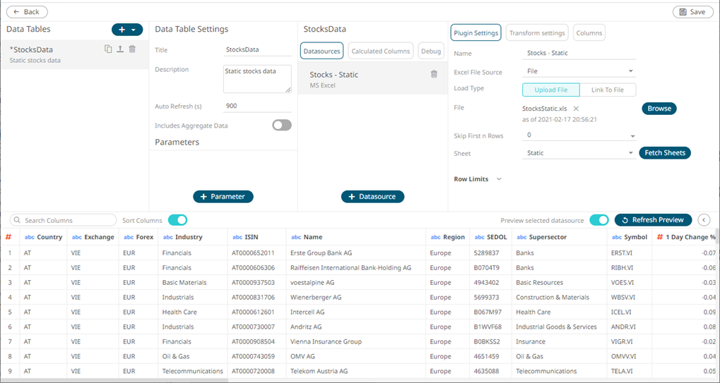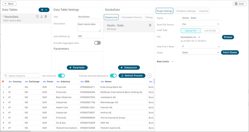 10. Click . You are returned to the Open Workbook in Design Mode, with the new data table added in the