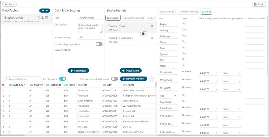 The format of the numeric or Date/Time columns retrieved from the data source can be modified.