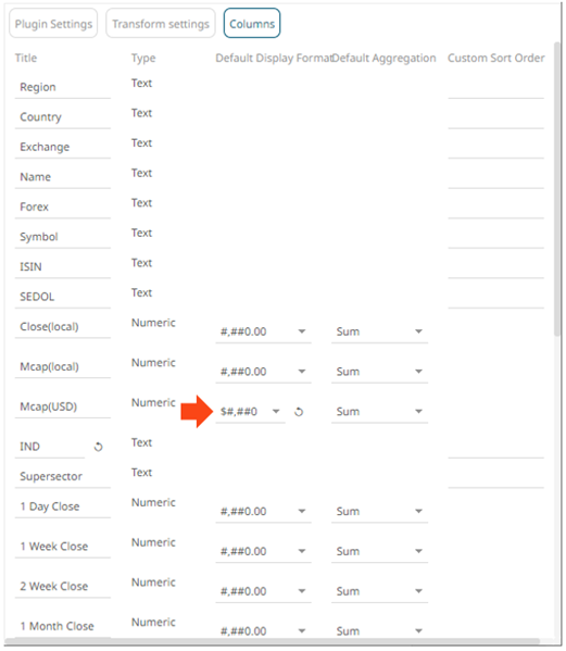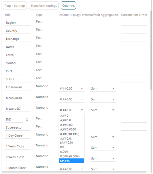 3. Click the drop-down list and select the Format for the numeric or Date/Time column.