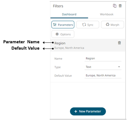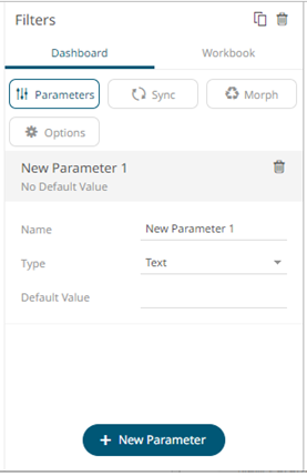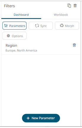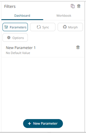 Aside from the parameters of the associated data tables, used by visualizations and other parts on the dashboard, a Designer can add new dashboard parameters which can be used as value sources inside actions.