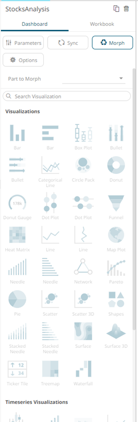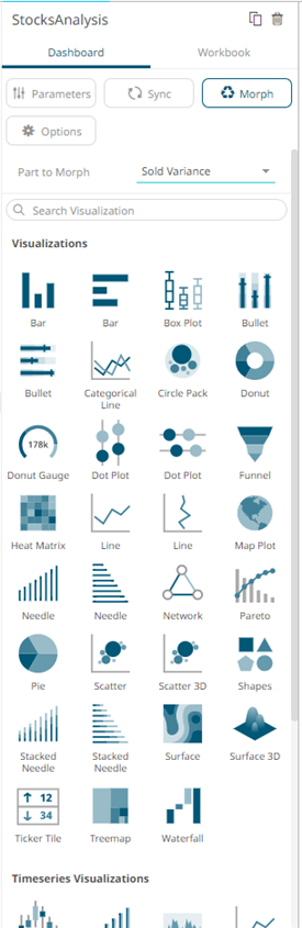 You can morph a visualization by simply selecting the required resultant visualization from the available listing.