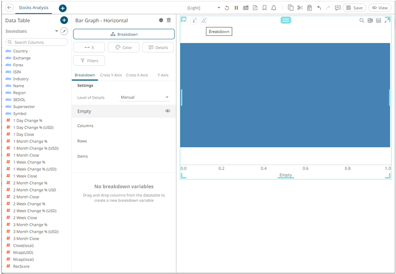The example above shows that there are no columns added yet as a breakdown (Empty state) with the X variable default values (0.00 to 1.00).