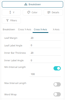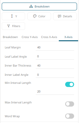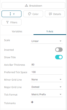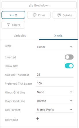 The X and Y axes of visualizations may include the following settings when accessed from the Breakdown section: