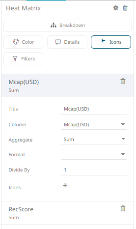 Clicking the Add Icon button with a numeric column displays a new section where you can specify: