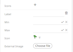 9. Specify the numeric range (Min and Max) to display the icon. Leaving the Min and Max fields empty implies no limit.